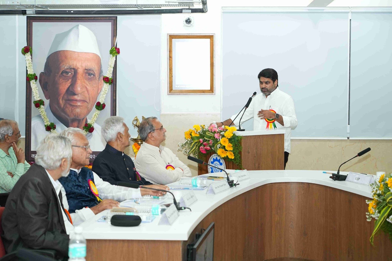 Addressing the audience at the Inauguration, Namakaran and Award distribution ceremony, the former revenue minister of Maharashtra state Mr. Balasaheb Thorat Saheb.